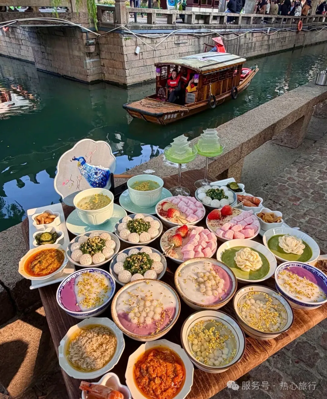 白天的平江路静谧悠然,沿街的茶馆、手作店、小书屋,都藏着一份江南的精致。夜幕降临,灯影摇曳,运河边传来悠扬的评弹声,空气中弥漫着桂花糕与苏式红汤面的香气,烟火与诗意交织,让人流连忘返。