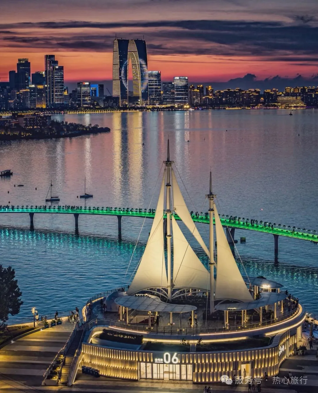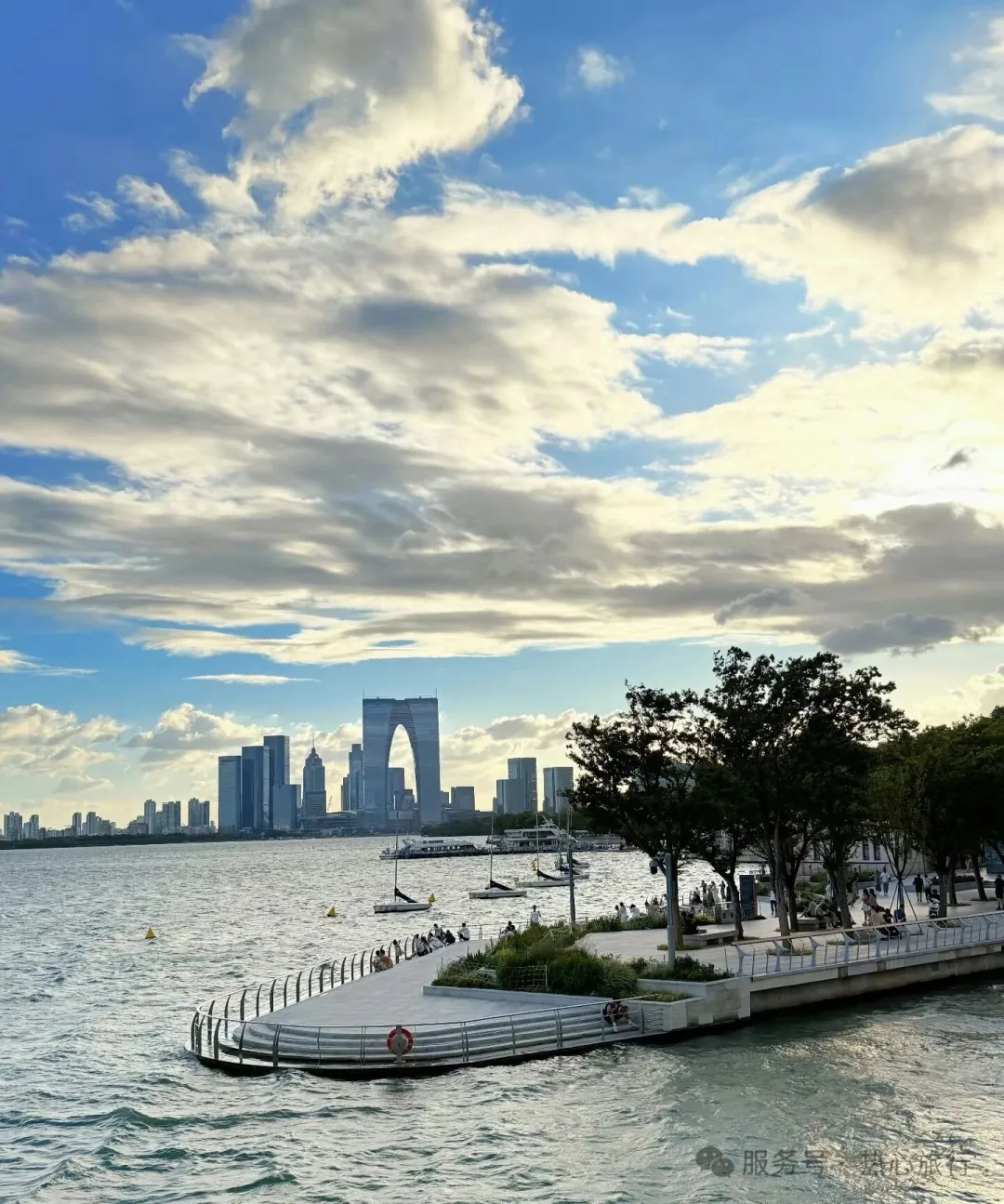 东方之门:绝对的C位,被网友戏称为“大裤衩”。拍照小技巧是在楼下的小石狮子旁,用手机0.5倍广角仰拍,轻松 get 同款网红照,苏州之眼:世界最大的水上摩天轮,128米高可以俯瞰整个金鸡湖的湖光山色,非常震撼。